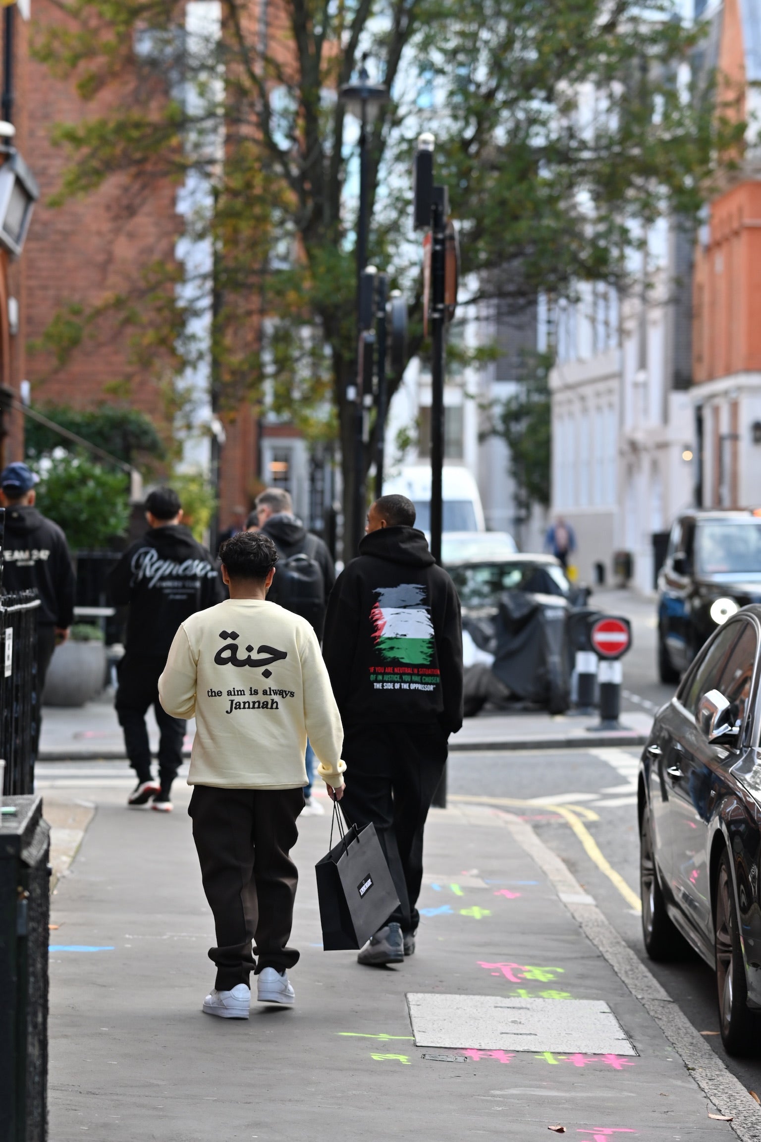 Rooted in faith and resilience, each design carries the stories that shape us. The pieces truly represent our values, from our Islamic upbringing to the enduring spirit of Palestine. These are more than garments; they are reminders of who we are, what we stand for, and the values we carry with us every day.